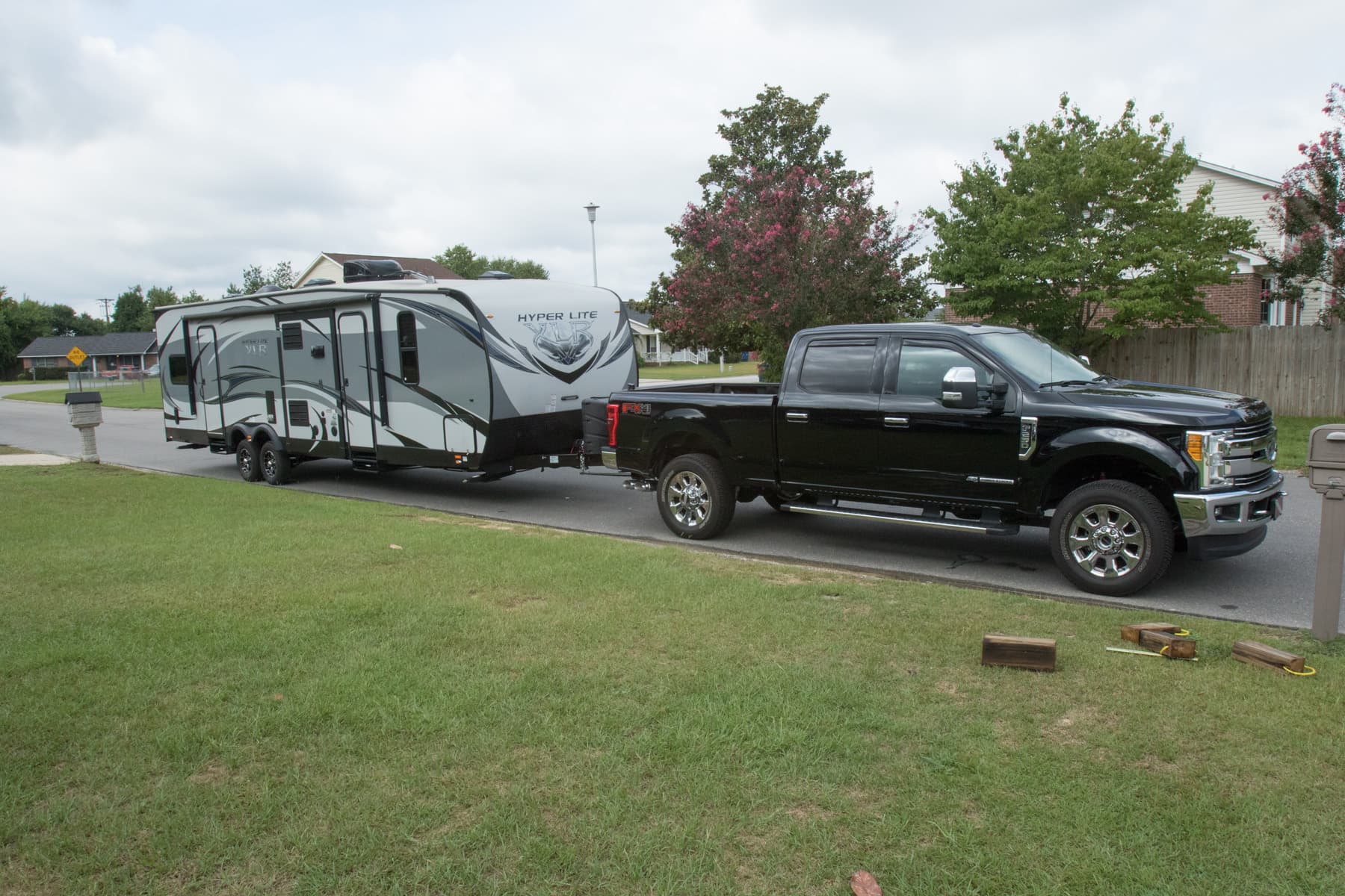 In the fall of 2016, Mark and his wife made the decision to buy their own RV – a 36-foot Forest River toy hauler, weighing in at 10,000 lbs. fully loaded. Knowing what happened with the borrowed pop-up, they knew that they were going to have to find an air suspension solution to make towing easier. At the time, he had a 2016 Ford F-150 Lariat Crew cab, all the truck he could possibly need to get the job done.