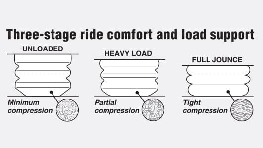 The modern jounce bumper also acts as a progressive compression spring under loads that are approaching full compression, offering a smoother ride and improved handling over a wide range of driving and load conditions.