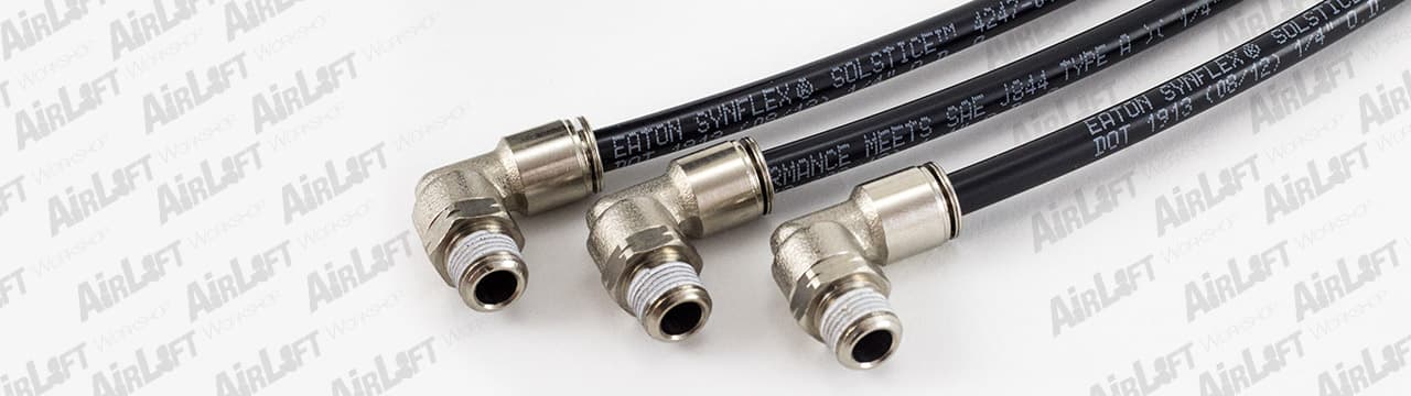 - Finally, keep in mind that the insertion depth to seat the air line will vary depending on the material and size of the fitting. You will typically find a combination of brass and black nylon bodied fittings in air lift air spring kits. Remember it is the “click” that tells you the line is seated and sealed.